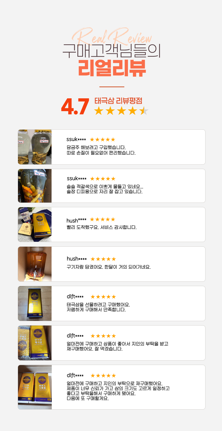 6년근 태극삼 1등급 16지 600g (16뿌리)