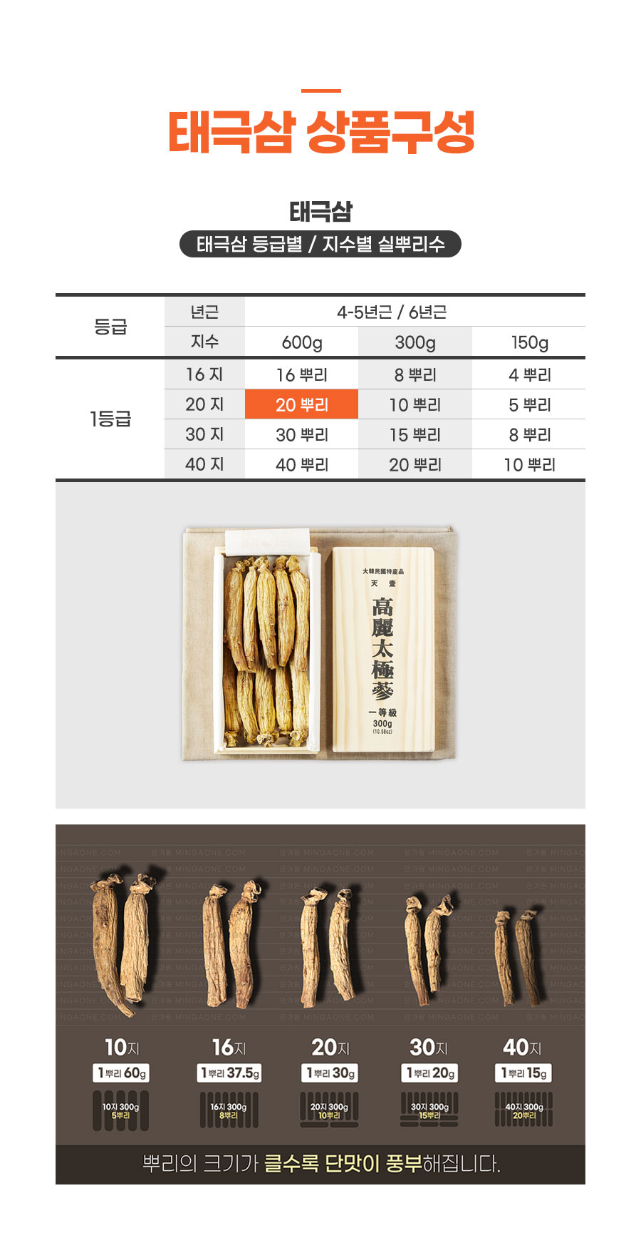 5년근 태극삼 1등급 20지 600g (20뿌리)
